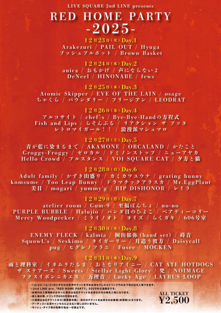 「RED HOME PARTY」Day9OPEN12:00/START12:15
